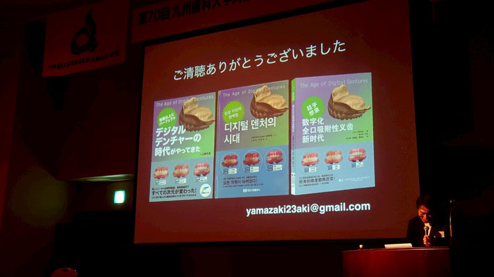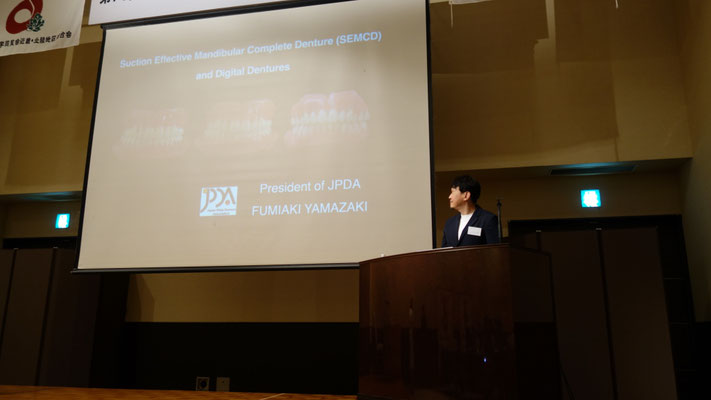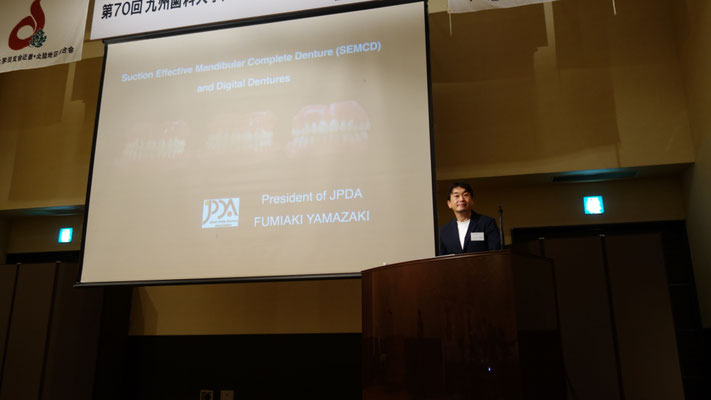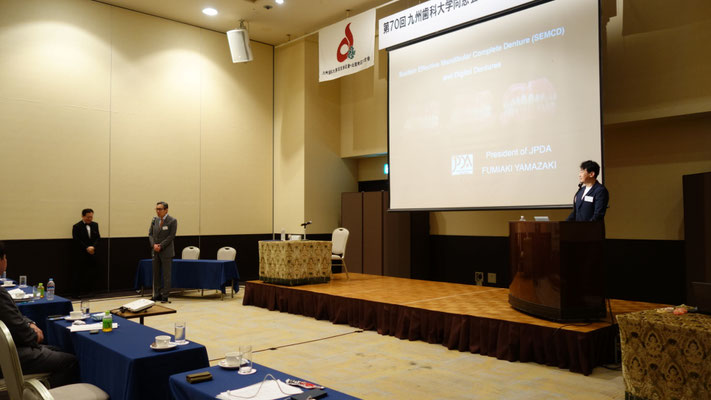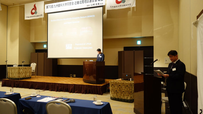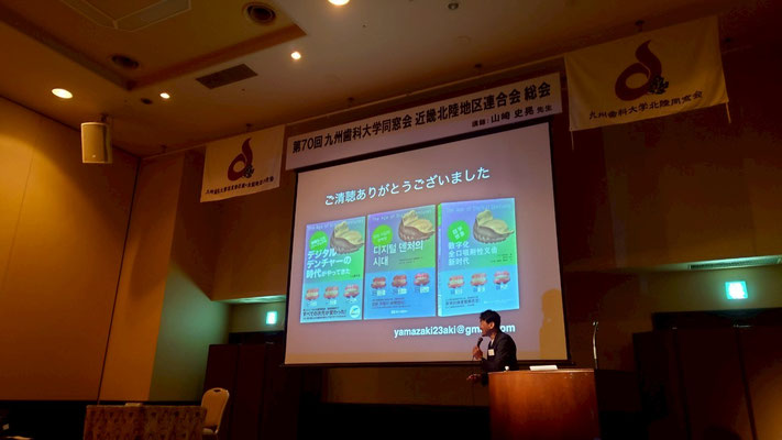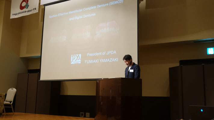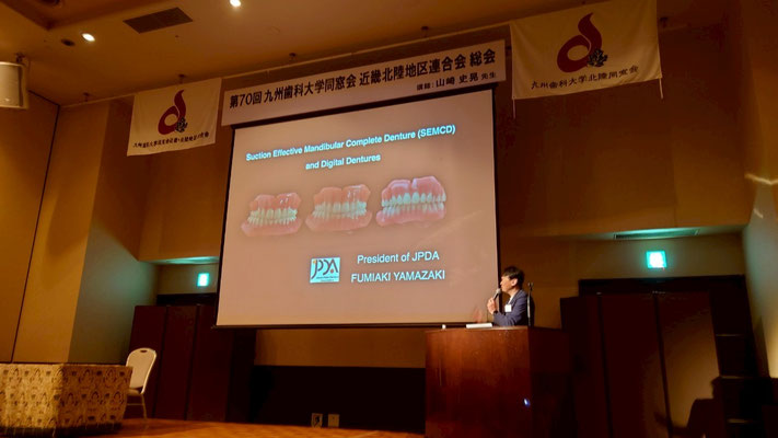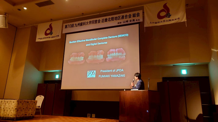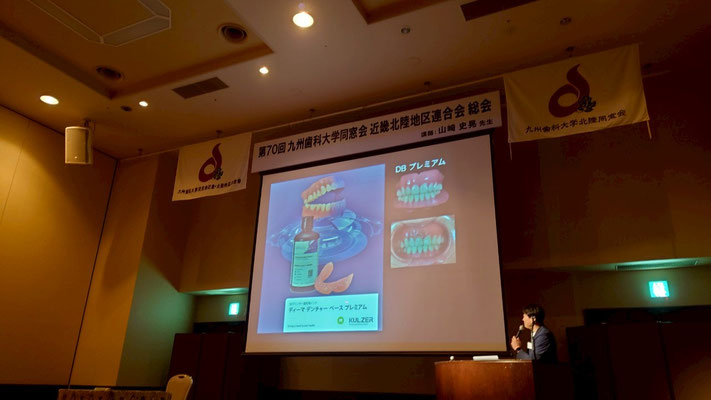 学術講演会では杉典子副会長の開会の辞 長崎三男会長のご挨拶に続いて 富山県ご開業の山崎史晃(大43期)先生がご登壇 日本有床義歯学会の会長を務めておられ 学会やセミナー デンタルダイヤモンドなど雑誌 国内外で講演活動など広くご活躍です「デジタルデンチャーについての現状と課題」と題して 光学印象を含めた3Dプリンターやミリングを用いての有床義歯についてお話を詳しく分かりやすくご講演なさいました