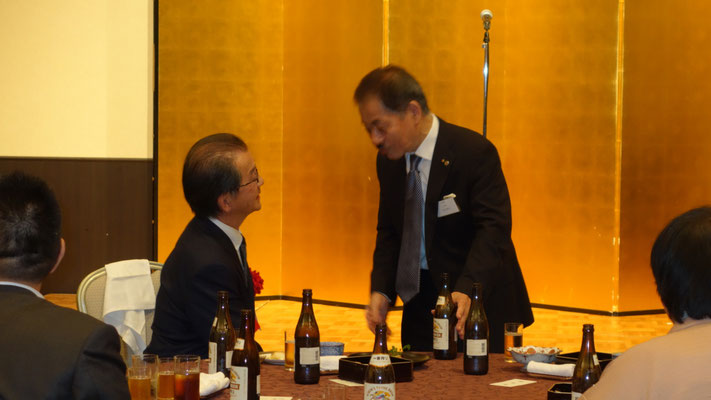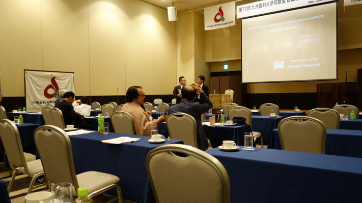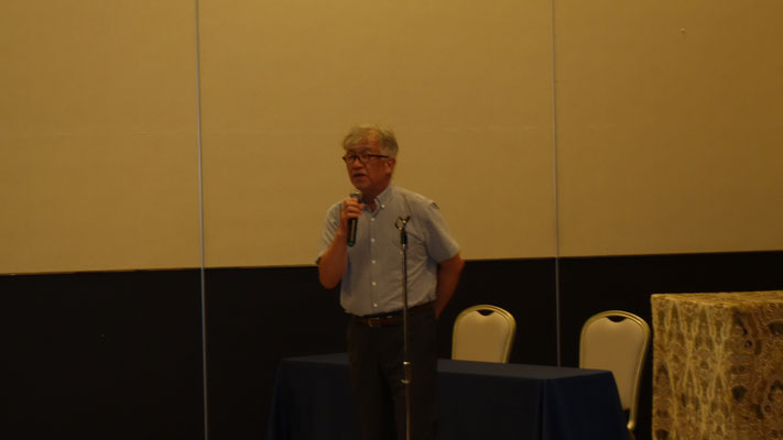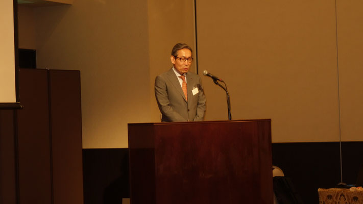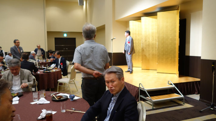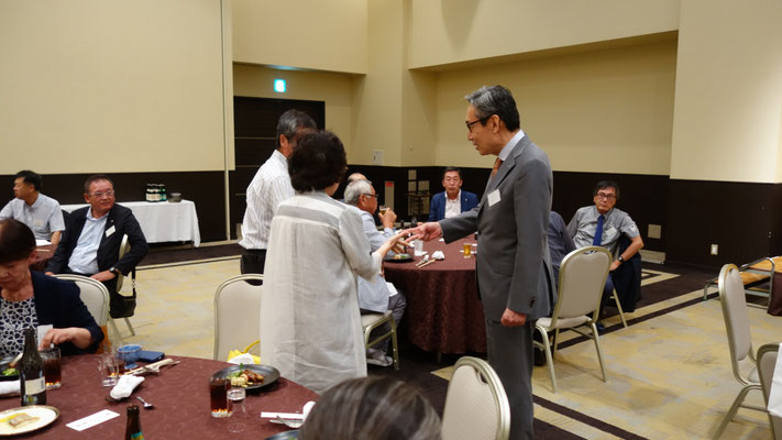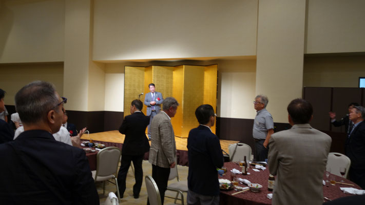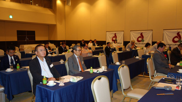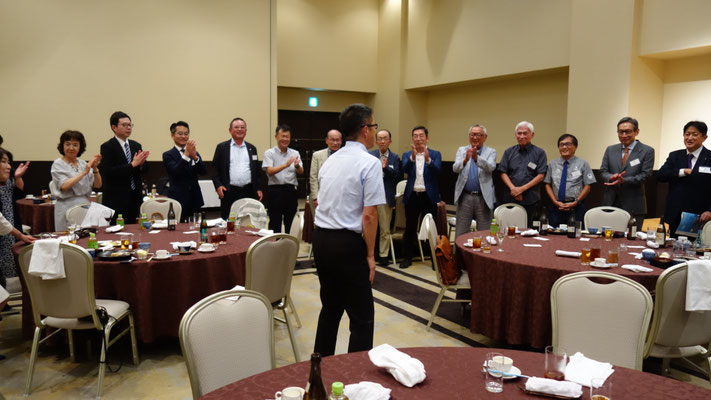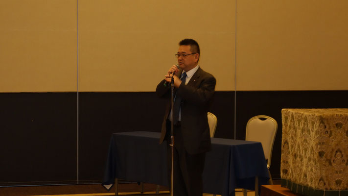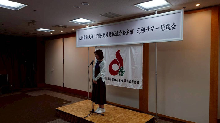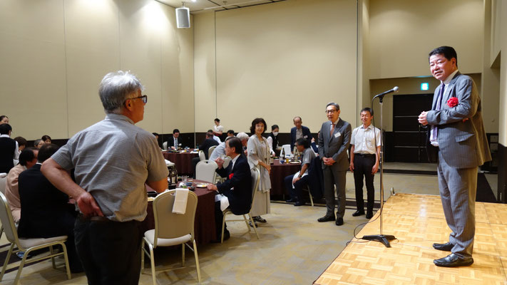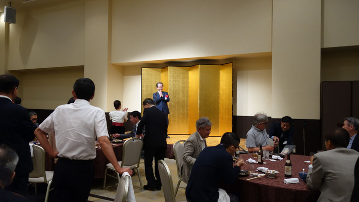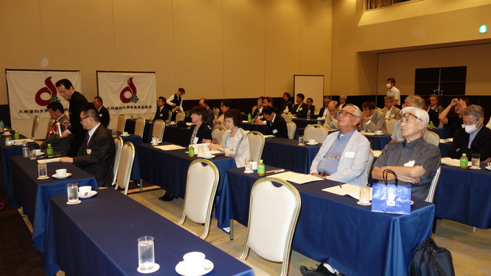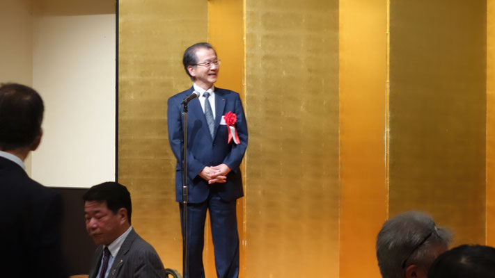 続いて来賓としてご臨席を賜りました九州歯科大学同窓会会長の森章(大35期)先生が挨拶に立ち 同窓会の現状に鑑み 再来年予定している同窓会百周年記念事業についてなお一層のご協力をお願いすること 百周年はゴールではなく まださらに続くので若手の先生方や学生さんにも同窓会活動の意義を理解して頂き さらなる会員の増強に協力をお願いする旨のご挨拶がありました