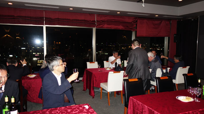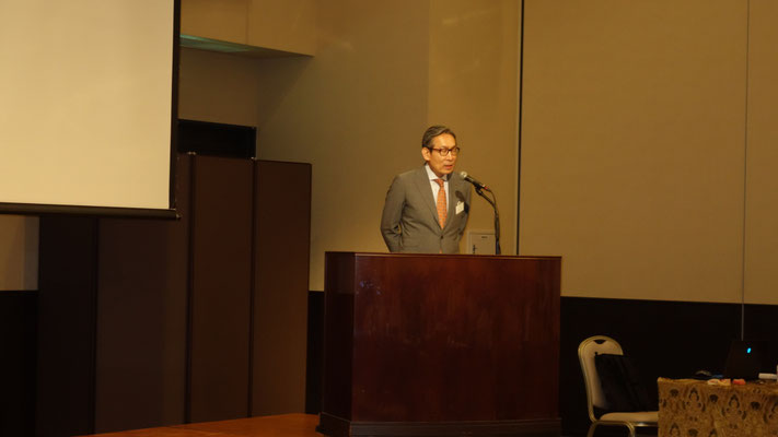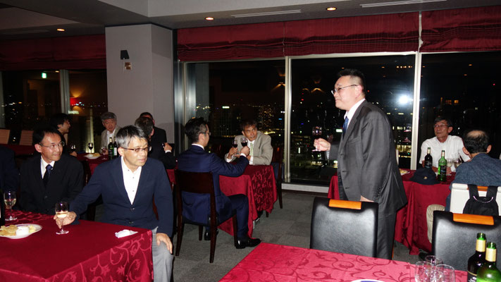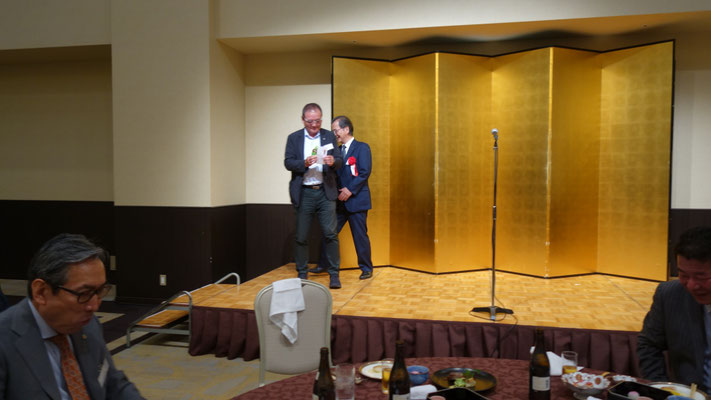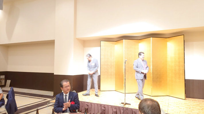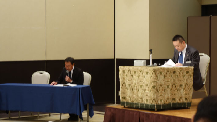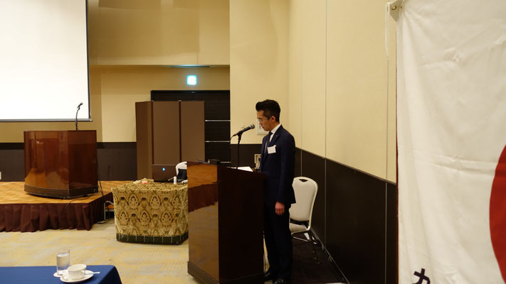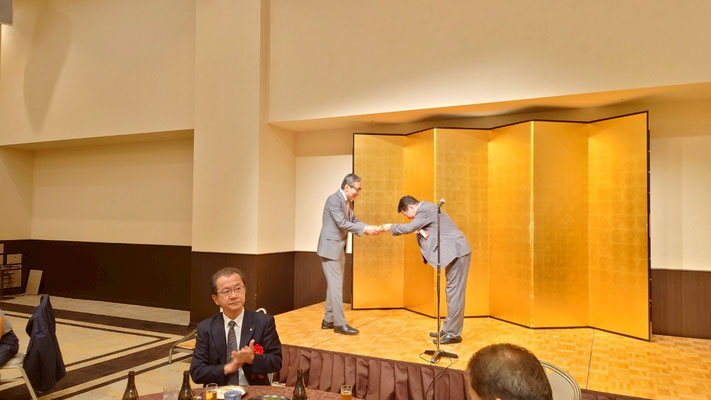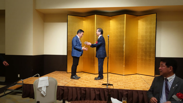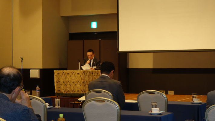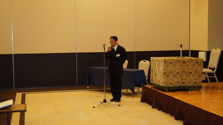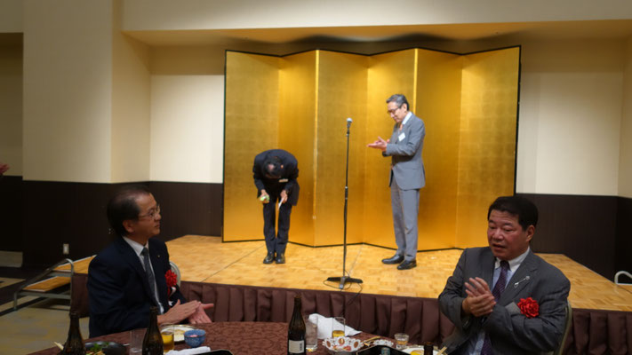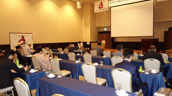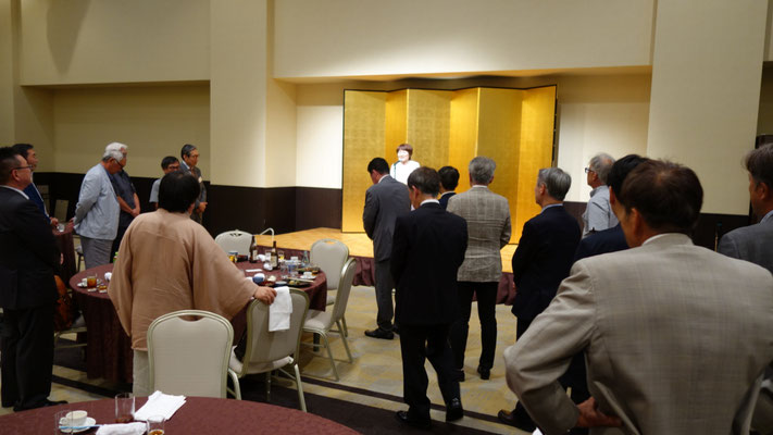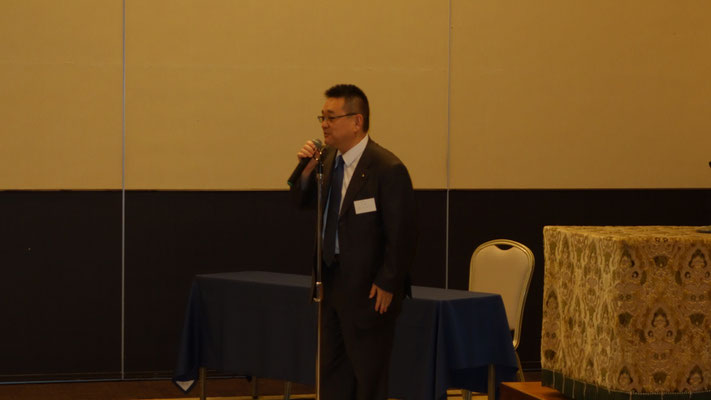 続いて来賓としてご臨席を賜りました九州歯科大学同窓会会長の森章(大35期)先生が挨拶に立ち 同窓会の現状に鑑み 再来年予定している同窓会百周年記念事業についてなお一層のご協力をお願いすること 百周年はゴールではなく まださらに続くので若手の先生方や学生さんにも同窓会活動の意義を理解して頂き さらなる会員の増強に協力をお願いする旨のご挨拶がありました