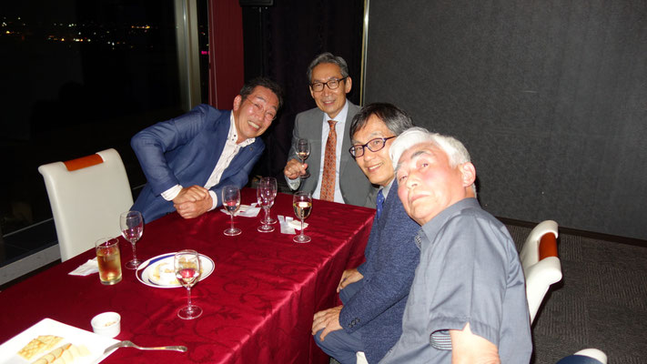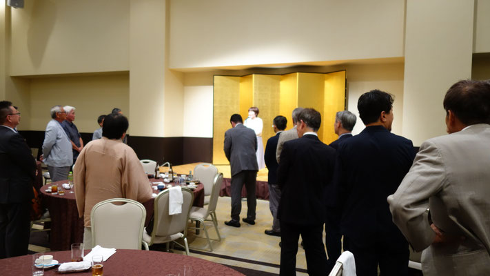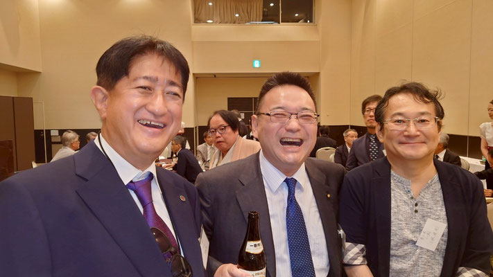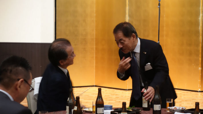 講演会後はお楽しみの懇親会です 北陸同窓会の和田紀久先生の開宴の辞 長崎三男会長の挨拶に続いて 来賓として地元の石川県歯科医師会会長の飯利邦洋先生にご臨席を賜り 能登半島地震において被害が出たこと その一方で歯科医師会からも和田紀久先生をはじめ何人もの歯科医師が被災地に入って災害援助活動にあたったこと また全国からの支援の手を頂いたことについて謝意を述べられました 乾杯のご発声は壷坂久次(大24期兵庫)先生 ユーモアを交えて会場内は和やかなムードに宴が開かれました