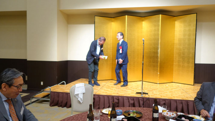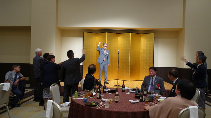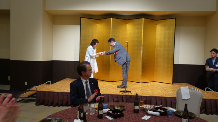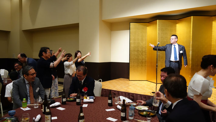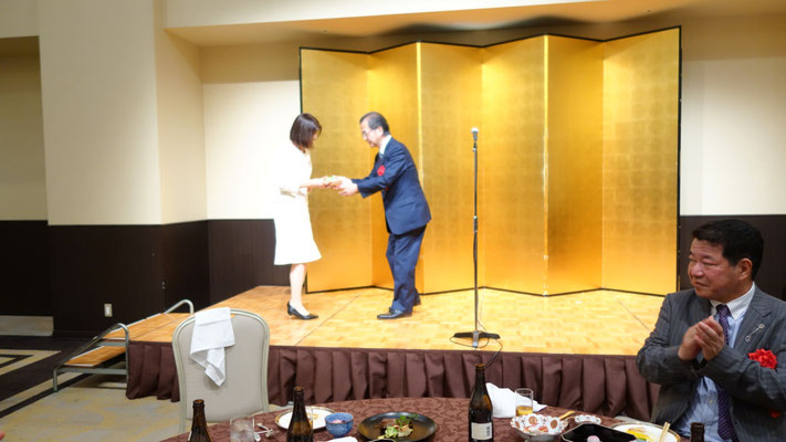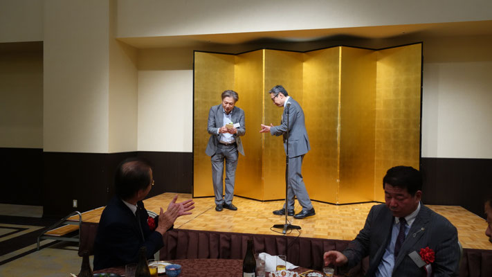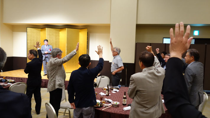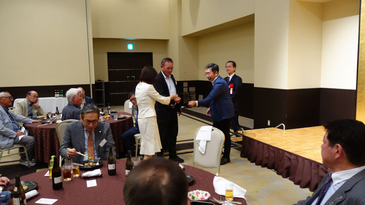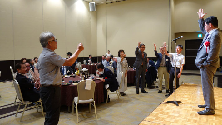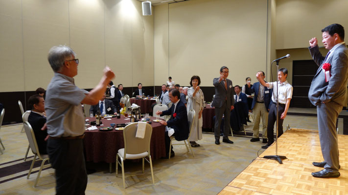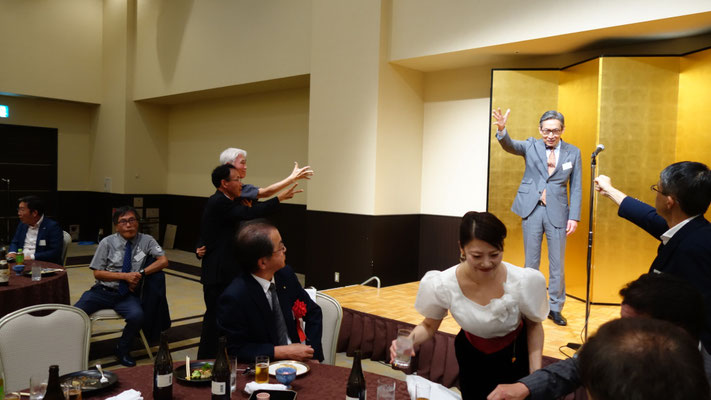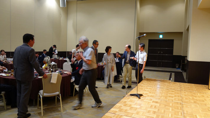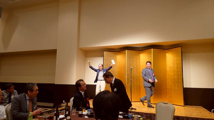 スクラップ金属回収の日本メディカルテクノロジー社様により協賛を頂き アトラクションにじゃんけん大会が行われ 盛大に盛り上がりを見せました 楽しい時間はあっという間に過ぎ エール 校歌斉唱の後に次期総会開催担当県の兵庫県同窓会会長の渡辺雅子(大33期兵庫)先生の閉宴の辞にてお開きとなりました