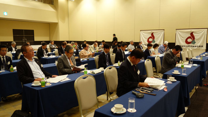 議事に移り 恒例により開催府県の北陸同窓会の会長 和田紀久(大39期北陸)先生が議長に選出され 議事録署名人には高濱勉(大40期大阪)新田継三(大38期奈良)先生が指名され 議事が進められました 令和6年度決算を東江正裕(大57期大阪)先生 監査報告は岡谷親男(大27期大阪)監事 活動報告を山川達也(大35期兵庫)先生 令和7年度予算 活動計画 令和7年度執行部人事 いずれも原案通り可決承認され総会は成立致しました 閉会の辞は辻裕文(大32期滋賀)先生が締められました
